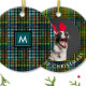Simple Classical Green Plaid Tartan Photo Monogram Ceramic Ornament