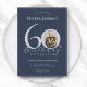 Simple Classy Navy Blue Silver Photo 60th Birthday Invitation