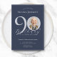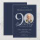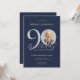 Simple Classy Navy Blue Silver Photo 90th Birthday Invitation
