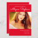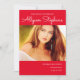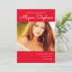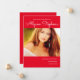 Simple and classy red graduation announcement design featuring a single large photo on front with your name on top and school and class on bottom in white text. Great for high school or college graduations.