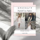 Simple, classy and elegant three photo blush pink and grey with black text graduation announcement design featuring script "signature" text for your grad's name.