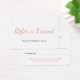 This design provides a modern and professional look that easily stands out and can be used to promote referral programs. The minimalistic design ensures that the referral message is the main focus of the card, while the pink and grey colours make it aesthetically pleasing.