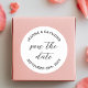 Simple Clean Wedding Announcement Save the date Classic Round Sticker