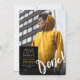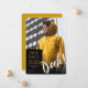 A modern minimalist graduation announcement photo card design featuring a simple flat coloured rectangle colour box on a full bleed photo. The box can be removed and you can personalise and create a new box of any size in any custom colour of your choice within the edit product page.