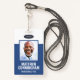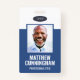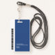 A modern and simple badge that does not distract from the important details. Easy to read from afar. Add a custom logo and company details. Add the employee's name, photo, and professional title. The bar of colour can be modified to match the company's official colours. At the back, add more information such as return address and the employee's ID number. Perfect for oval shaped logos.