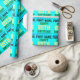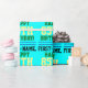 This plain birthday wrapping paper design features a message like "First-Name, happy 85th birthday!", where the name and birthday number can be customised. It also features decorative oval shapes. The background is coloured cyan. Wrapping paper like this could perhaps be used to wrap presents being given to celebrate somebody’s birthday. [~Z0000243]