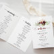 This simple colourful classic floral folded wedding program is perfect for a rustic wedding. The design features burgundy, pink, blush and white watercolor flowers with green leaves and red berries neatly bunched into attractive bouquets.