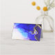 This colourful place card has a faint line to guide your handwritten guest names. The design is a unique alcohol ink wash of sapphire blue and citrus orange with an accent of metallic gold. Simple Colourful Wedding Place Card.