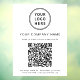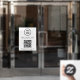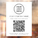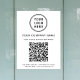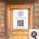 Simple modern white window cling sign for your business with a QR code for customers to scan for a list of your products, services, prices, hours, etc. Add your logo, business name, phone number and street address and input your website URL address to generate a scannable QR code.