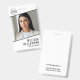 This clean vertical ID badge features a crisp white background with simple black line accents for a modern touch. Your company logo sits at the top left, and your name and job title appear in classic black fonts in the bottom right. Your photo is centered to keep the layout professional and easy to read. The back includes space for company return info. Fully customizable for a polished, minimal, high-contrast design.