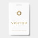 Keep track of visitors and ensure the return of your badges with this simple visitor badge featuring a clean solid white background, golden typography and a premade gold diamond logo that can customised with your logo. The simple design is professional and perfect for any business or event.