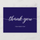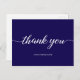 Express your gratitude with our Simple Company Name Thank You Script Postcard. This elegant and easy-to-use template allows you to personalise it with your company name, a heartfelt message, your website, and return address, making it a thoughtful way to show your appreciation to clients, customers, and patrons. Dark blue background with white text on the front.