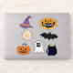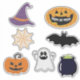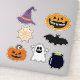 Witch hats, ghosts, pumpkins, spider webs witch cauldron and a bat sticker sheet.