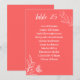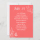 Unique simple seating chart card featuring romantic and elegant white flowers on coral pink background