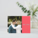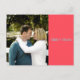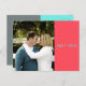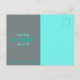 This Save the Date postcard is simply designed with coral, teal, and grey colour blocks. It features an image on the front with names printed over a coral colour block. The details are stated on the back over a grey colour block. Teal and grey colour blocks divide the back, overlayed with teal text.