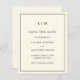 Simple ivory / cream budget save the date featuring a modern yet elegant design with your two letter monogram at the top and your wedding details surrounded by a thin border. A chic and stylish design that is great for a minimalist couple.