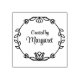 This custom "Created by" rubber stamp features a flower frame with a custom name.