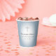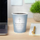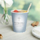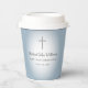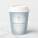 Simple Cross Boy's First Communion paper cup, with a dusty blue and grey design. With customisable lettering, you add your own text. A tasteful addition to your special child's spiritual milestone.