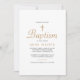 This simple baptism invitation features a gold colour cross and baptism written in elegant script. This minimalist invitation is perfect for a Catholic sacrament of baptism, Christian baptism, or Christening religious occasions.