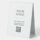 Add branded detail to your business with this personalised table sign. This design features template for your logo, QR code and simple text. More business supplies are available at my store BaraBomStudio.