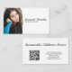 This business card design features a photo placeholder with template name and occupation. The back includes coordinated design and colours with text fields for the business name, details and qr code. Replace the placeholder photo with your vertical format photograph on the front and your QR code on the back. Fill in the personalise fields or click customise to select a font style, size, and colour you like. Have the QR code link send potential clients to your website, client reviews, project photos or another specific link.The placeholder photo is courtesy pixabay.com.