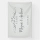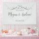 Create a beautiful custom wedding anniversary party banner by adding the couple's names and anniversary date to this sign. You can also choose to add more custom text below the names. My original designer faux silver gradient wisps of streamers radiate from both sides of the script, "25 Years". Personalise this simple grey welcome sign with the couple's name written in dark grey modern, elegant typography. Add the wedding anniversary date at the bottom or custom text. All the text on the light grey background is editable. You can also edit the number for a 60th anniversary, or 10th, or 50th or any anniversary you need. This would be a lovely wedding anniversary party banner for a wedding or anniversary party. You could also add "Happy Anniversary", "Congratulations". See my silver 25th wedding anniversary party collection for matching stemware, favours, invitations and table decor.