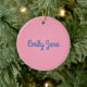Add a personalised touch to your holiday decor with this cute ceramic ornament featuring your name in a modern, fun typography style. The design combines vibrant cobalt blue text with a soft millennial pink background, creating a playful yet stylish look. Perfect for adding a unique flair to your Christmas tree or gifting to loved ones, this ornament blends simplicity with a pop of colour, making it a delightful addition to any holiday celebration.