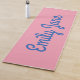 This custom yoga mat features a cute modern simple design of your name in a fun typography style in cobalt blue on a millennial pink background. Great gift idea.