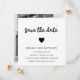 Minimalist save the date card featuring a simple design with the words, "save the date" in a thick handwritten script font and a heart above your event details. The backside has your favourite photo or you can delete the template image to leave it blank by clicking the "customise" button. All design elements are black over a white background. A modern and stylish way to announce the date of your upcoming wedding.