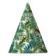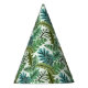 These simple and cute safari theme paper party hats feature a print with various jungle leaves.