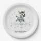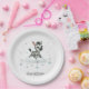 Cute baby shower or birthday paper plate featuring adorable little male zebra with some blue love hearts