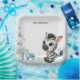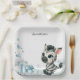 Cute baby shower or birthday paper plate featuring adorable little male zebra with some blue love hearts