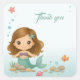 Cute baby shower or kids birthday thank you sticker featuring adorable little mermaid