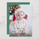 Simple cute Merry Christmas one photo green Holiday Card