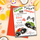 Simple cute modern monster truck kid 4th birthday invitation