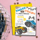 Simple cute modern monster truck kid 9th birthday invitation