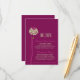 These wedding invitation inserts give guests directions to the church and ceremony, featuring tall, beautiful dahlias with a delightful abundance of petals on slender, stately stalks, in shades of softest green, vibrant spring green, and fuchsia pink against a deep eggplant purple background. The directions wording is completely customisable; in alternating script wedding font, classic block lettering, and a tall modern accent font.