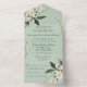 Introducing our charming All-in-One wedding invitation, showcasing simple yellow and white daisies blooming against a serene sage green background. The gentle yellow and white daisies evoke feelings of joy, purity, and new beginnings. Against the soft green backdrop, they create a harmonious and soothing scene that will surely leave a lasting impression on your guests. This design radiates an aura of simplicity and elegance, reflecting the beauty of your love story. The All-in-One wedding invitations are both beautiful and practical by combining the wedding invitation with an easy to remove perforated RSVP postcard. They are also quick and easy to prepare for mailing. Simply address the invitation, fold the back flap and seal with the included clear stickers. Once your guests receive the pre-addressed invitation they simply tear off the perforated RSVP card and drop it in the mail.