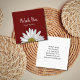Simple boho event planner business card, with a white daisy image on a red burgundy background. With customisable typography lettering, you add your own text. Great for getting the word out about your business!