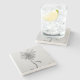 The coasters are gorgeous, a quality feel and heavy weight. They look like a precious archeological find. A rustic stone juxtaposed with a modern floral black and white print. I like the way the print goes slightly imperfect on the cut stone edges giving them a kind-of natural beauty.