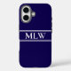 Simple Dark Blue and White Monogrammed Case-Mate iPhone Case