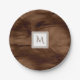 Simple Dark Brown Subtle Marble Modern Monogram Paper Plate