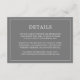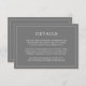 Simple wedding enclosure card featuring a modern yet elegant design with your details surrounded by a thin border. All text is in white over a grey background. The fonts and background colours may be changed to any colours you wish by clicking the "customise" button. A chic and stylish design that is great for a minimalist couple.