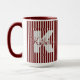 Simple Dark Red/White Stripes Pattern Name Initial Mug