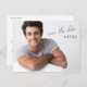 Here's a simple Save the Date Graduation postcard that carries a big impact. Dark grey script on the front right pairs up with your own photo and custom date. The back has plenty of text fields to get your information across. Modern, trendy, and easy to customise!