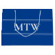 Simple Deep Blue with White Monogram Large Gift Bag
