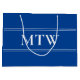 This deep blue gift bag has white text. You can edit it to show the correct monogram. White lines are above and below the text.