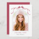 Simple Deep Blush Bow Graduation Photo Thank You Card