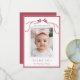 Simple Deep Blush Pink Bow Birthday Photo Thank You Card