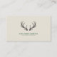 A simple business card with an elegant deer antlers illustration on a cream-colored background, with deep forest green texts. The design balances rustic natural imagery with contemporary design principles, perfect for outdoor, taxidermist, hunting, outdoor-related activities, or nature-based businesses.